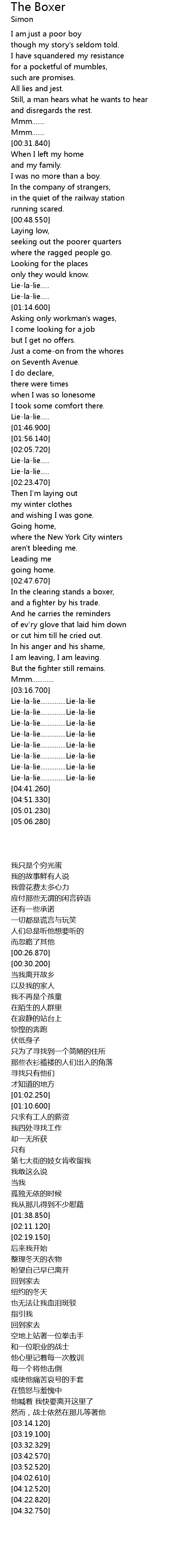 | Song | The Boxer |