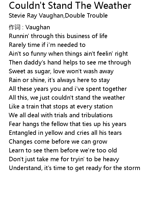 | Song | Couldn't Stand The Weather |