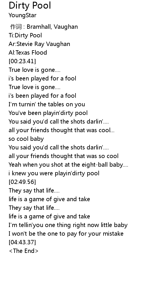 | [02:41.27] | i knew you were playin' dirty pool |