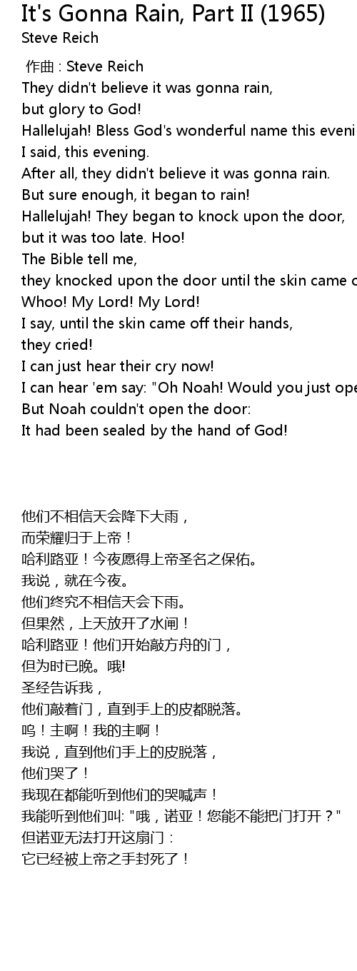 | [00:00.236] | They didn' t believe it was gonna rain, |