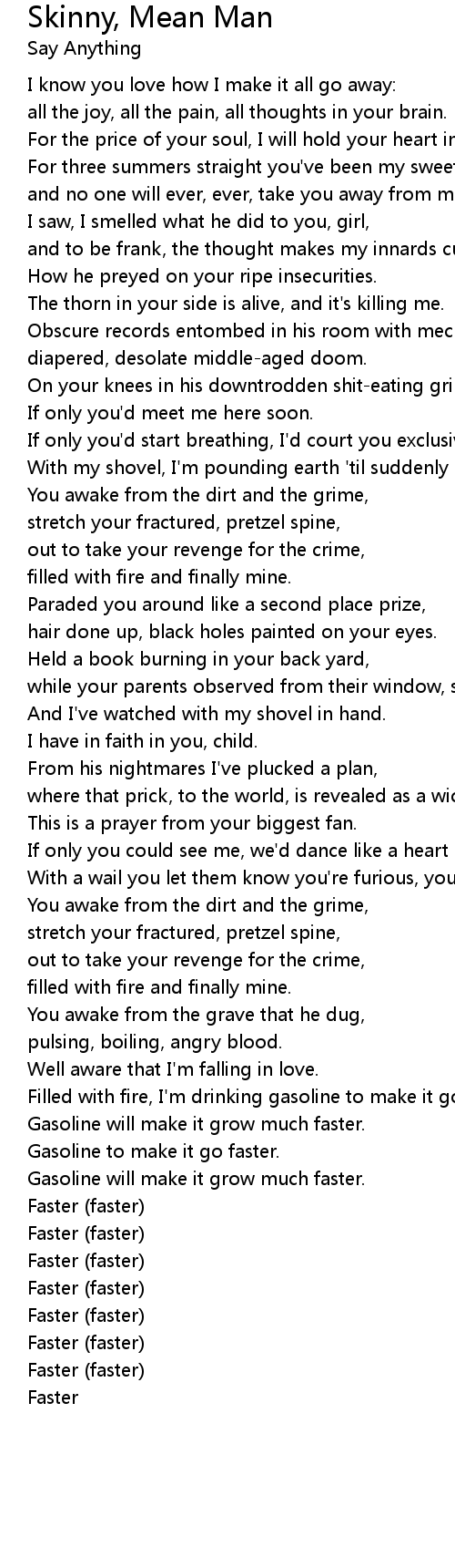 Filled with fire, I'm drinking gasoline to make it go faster,