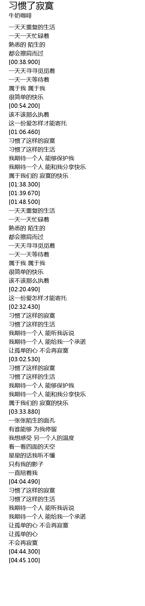| [02:33.430] | xí guàn le zhè yàng de jì mò |