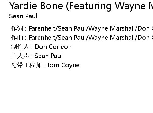 | Song | Yardie Bone (Featuring Wayne Marshall) (Album Version) |