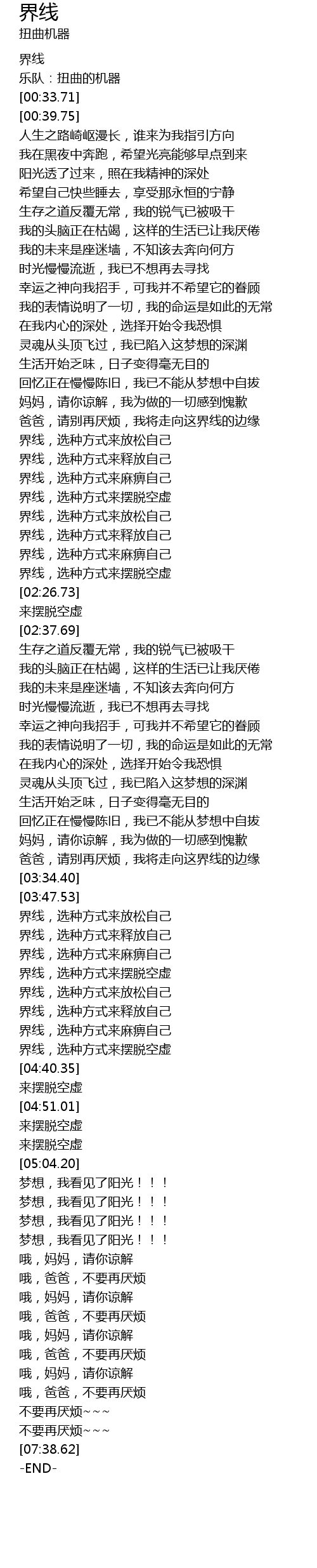 | [00:10.36] | 乐队:扭曲的机器 |