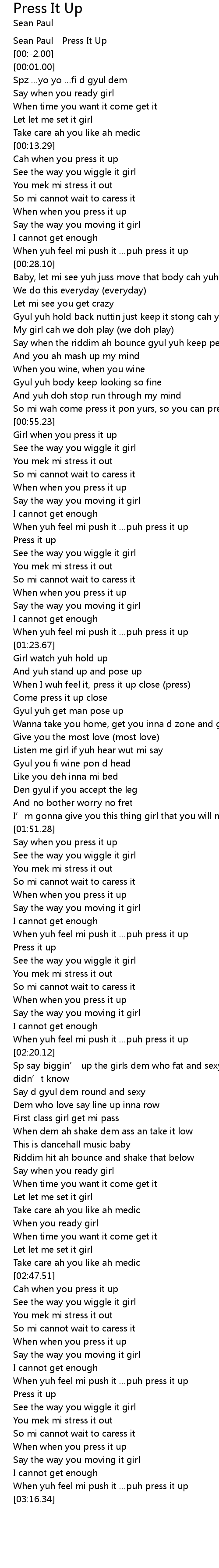 | [03:14.08] | When yuh feel mi push it puh press it up |