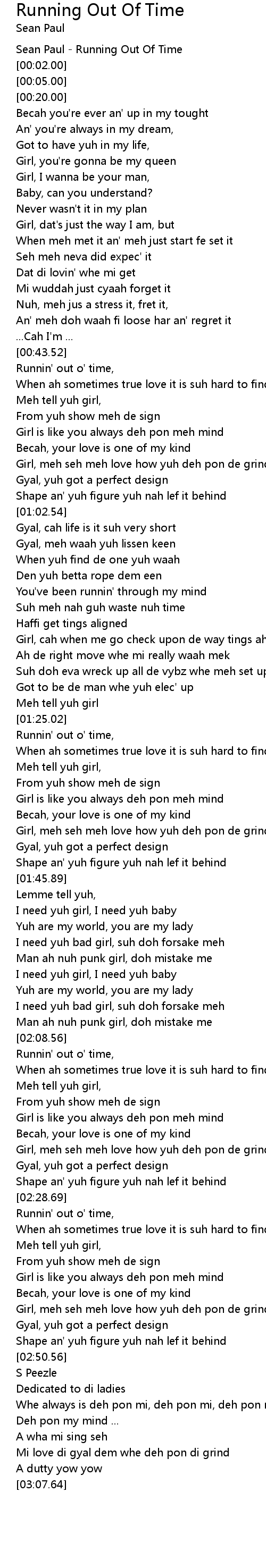 Sean Paul - Running Out Of Time |