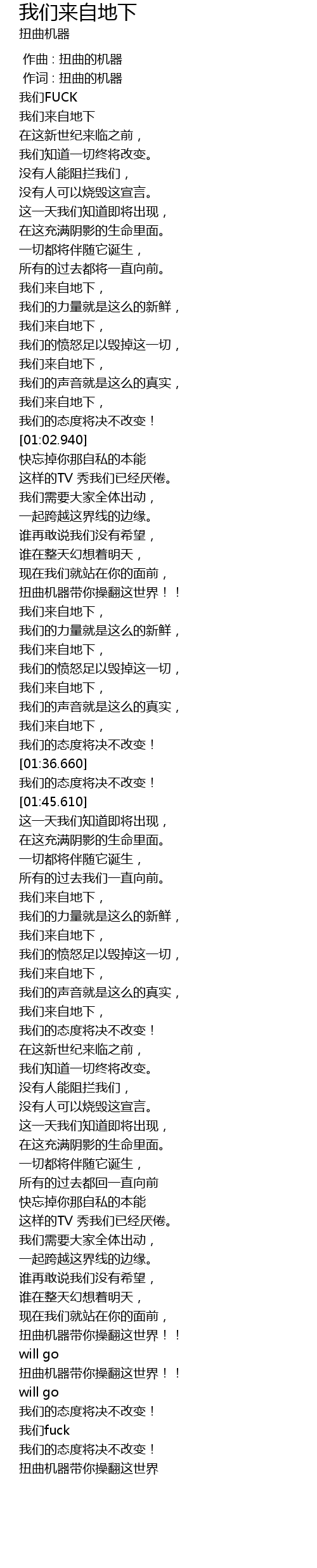 | [00:01.00] | 作词 : 扭曲的机器 |