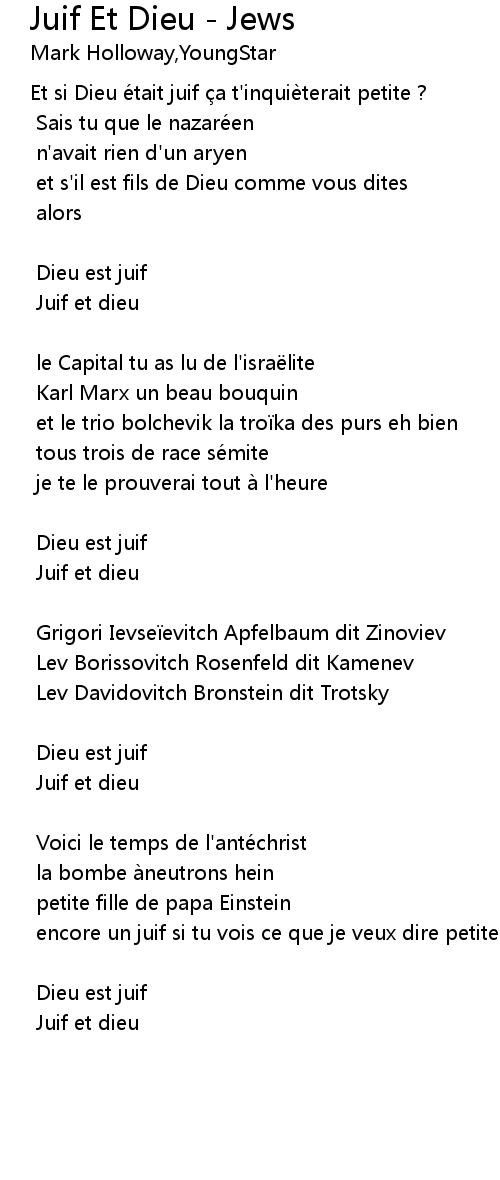 | Et si Dieu e tait juif a t' inquie terait petite ? | |