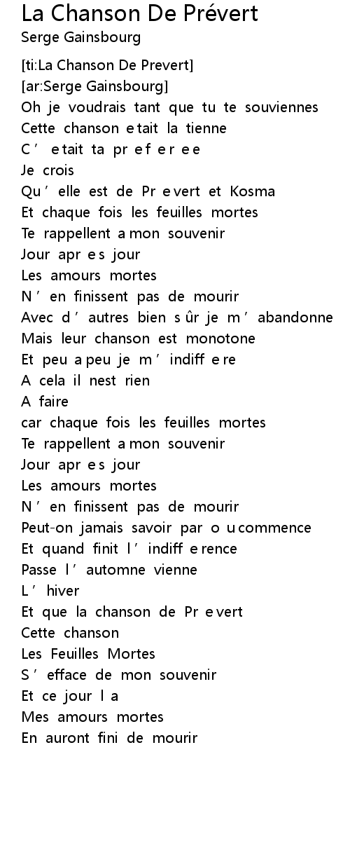 | [00:25.78] | Qu ’elle est de Pr evert et Kosma |