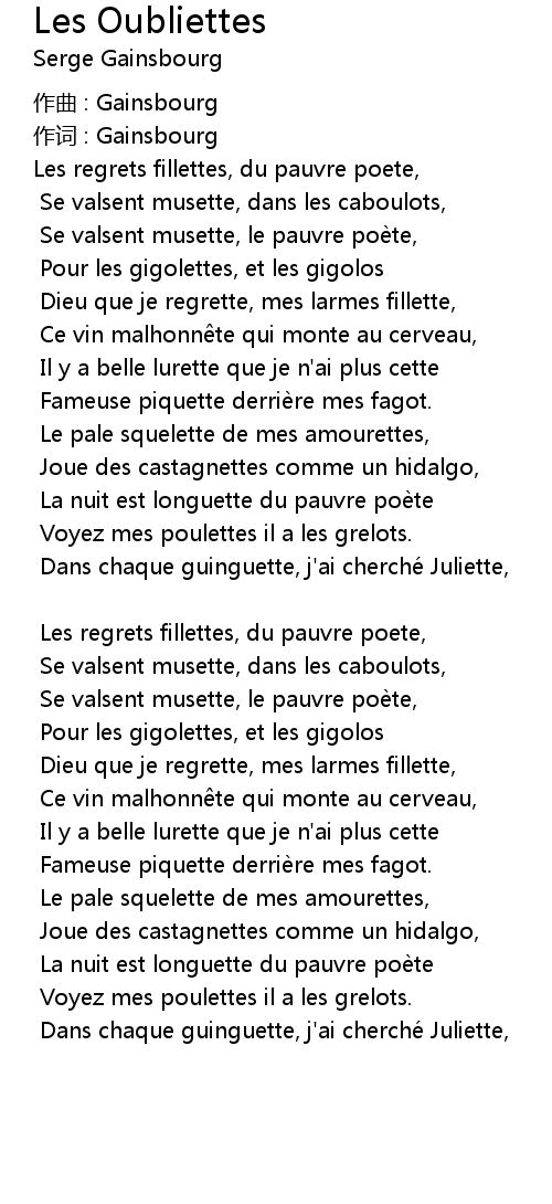 | 作词 : Gainsbourg | |