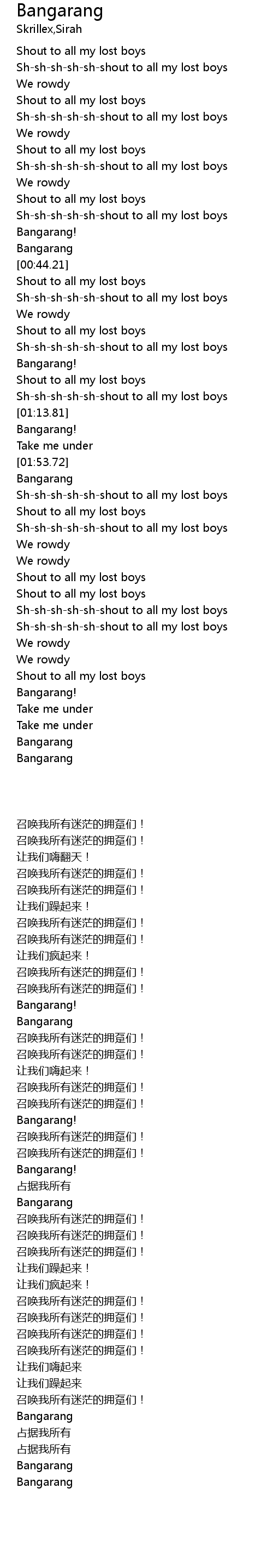 | [01:54.57] | Bangarang |