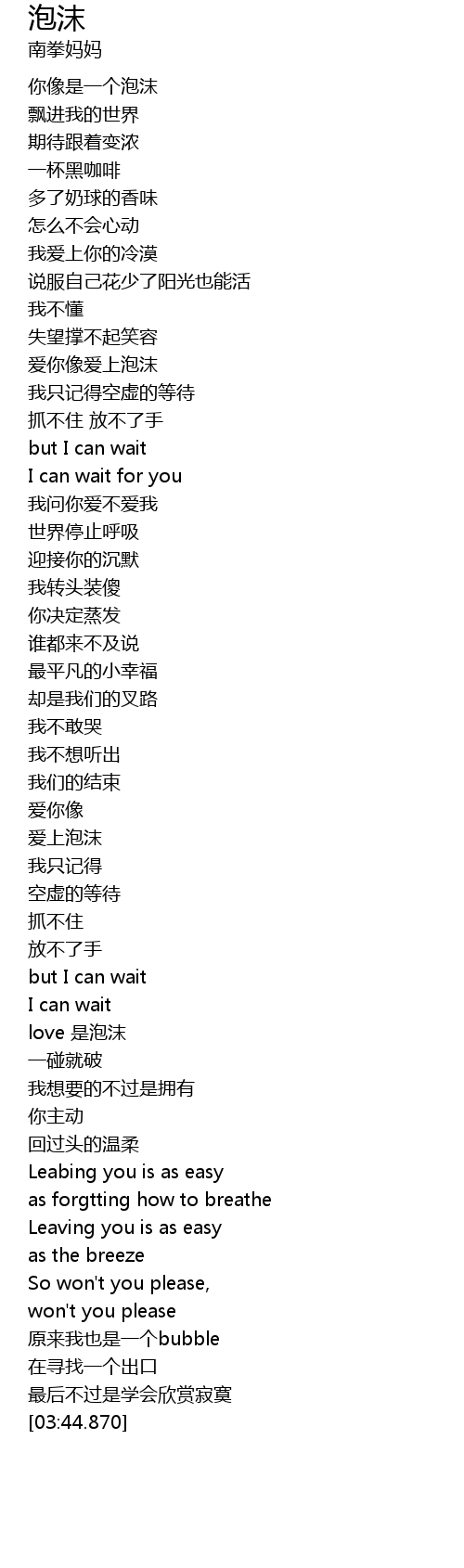 | [00:38.600] | 你像是一个泡沫 |