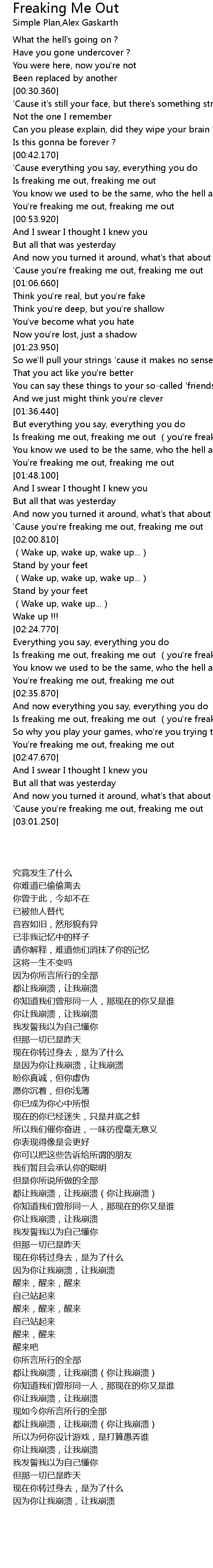 | [02:57.900] | 'Cause you're freaking me out, freaking me out |