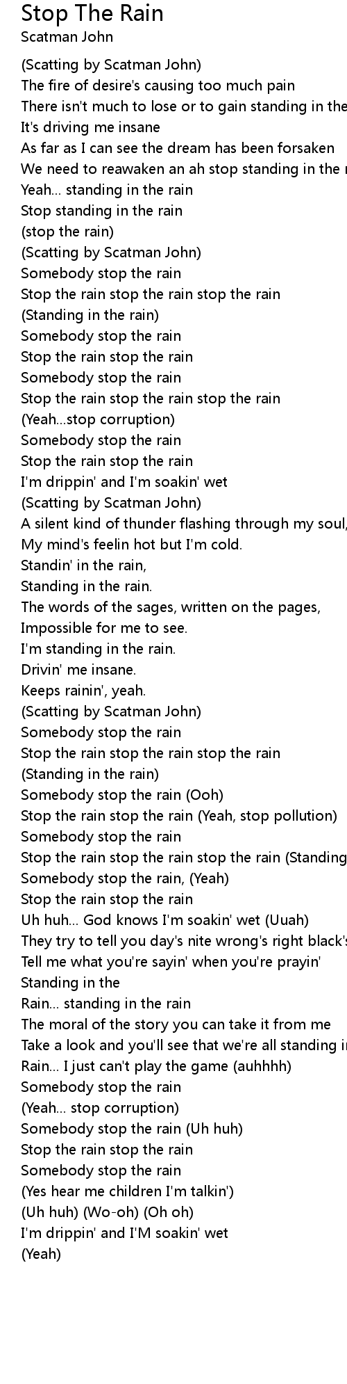 Stop the rain stop the rain stop the rain (Standing in the rain)