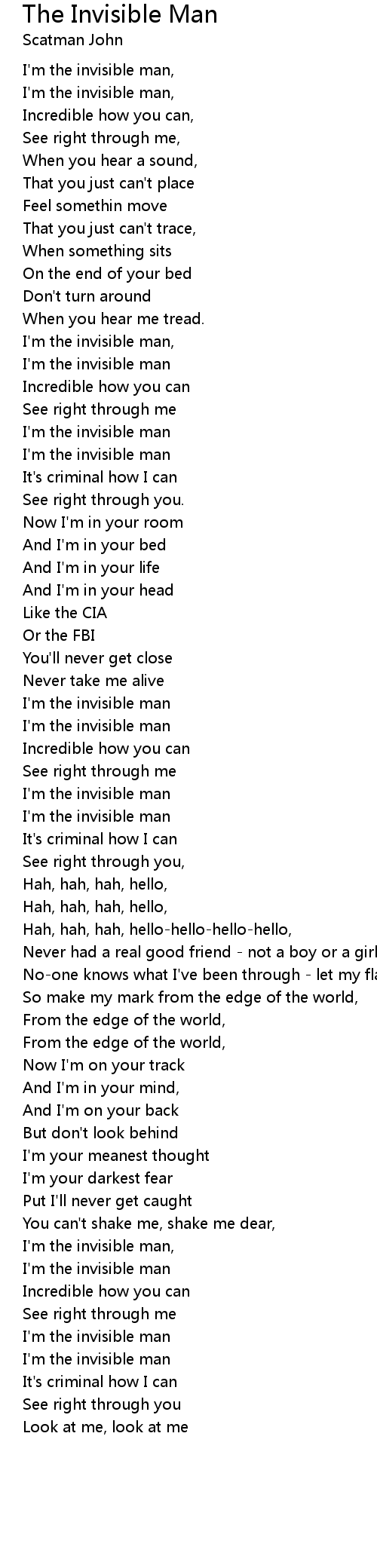 The Invisible Man Lyrics