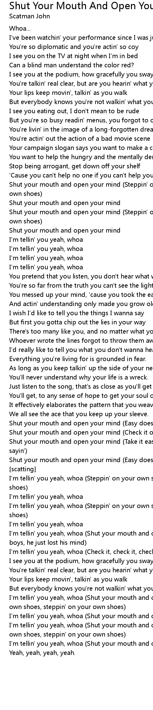 Shut your mouth and open your mind (Easy does it boys, he just lost his mind)