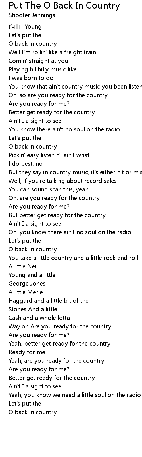 | Song | Put The O Back In Country |