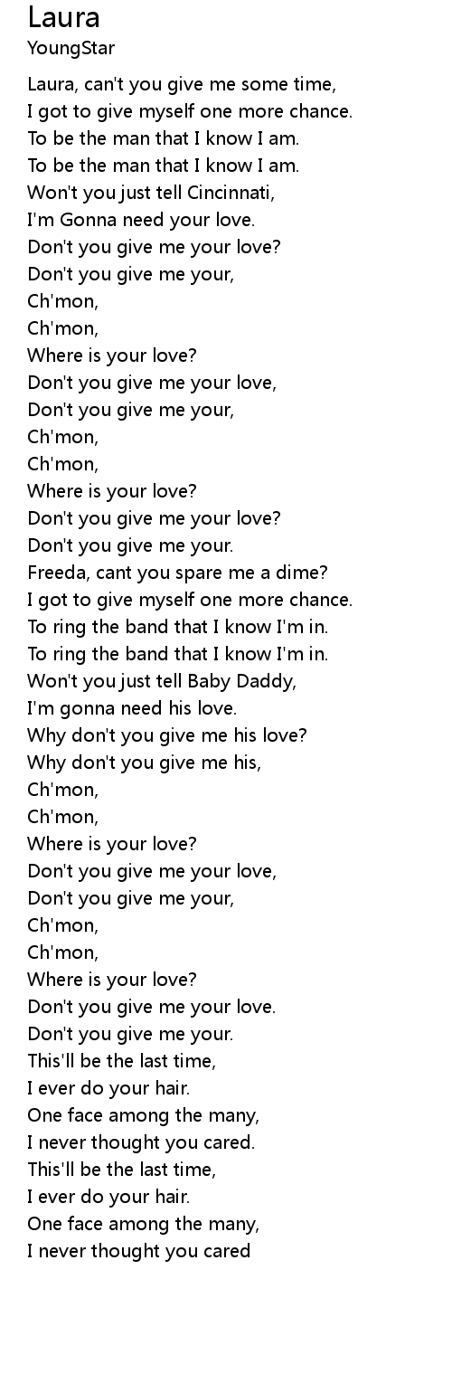 | [00:31.65] | Laura, can't you give me some time, |