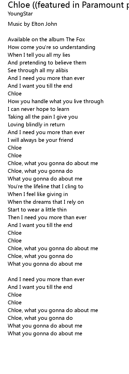 Chloe ((featured in Paramount picture "Bring On The Girls")) - featured in Paramount picture "Bring On The Girls" Lyrics