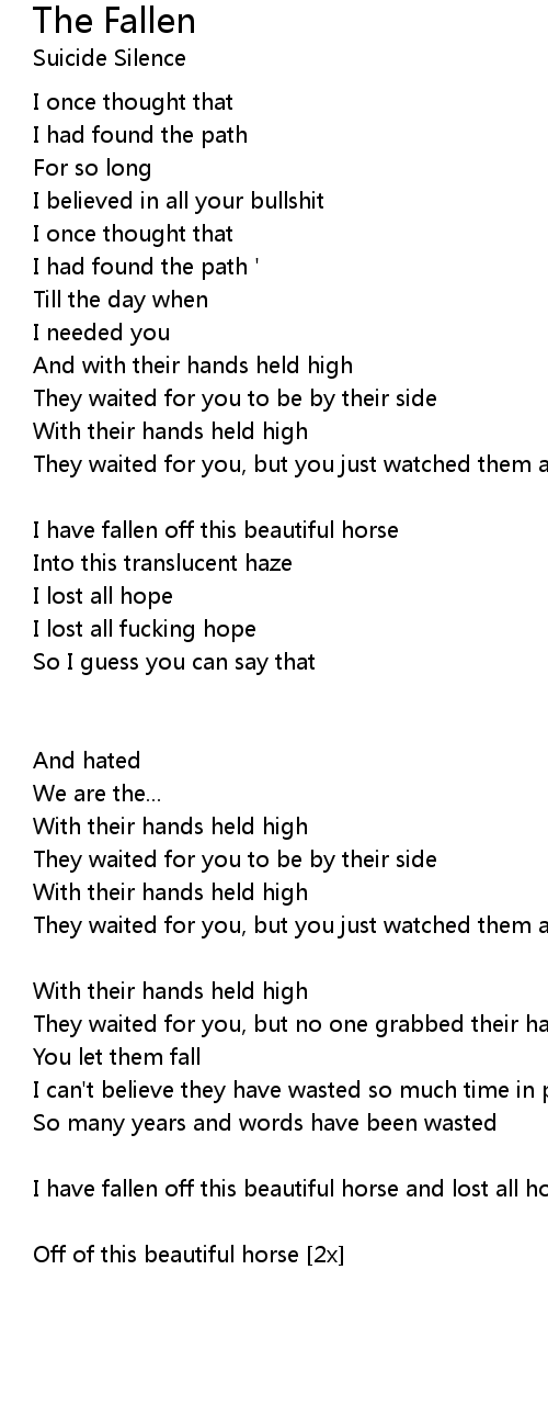 I have fallen off this beautiful horse and lost all hope and heart |
