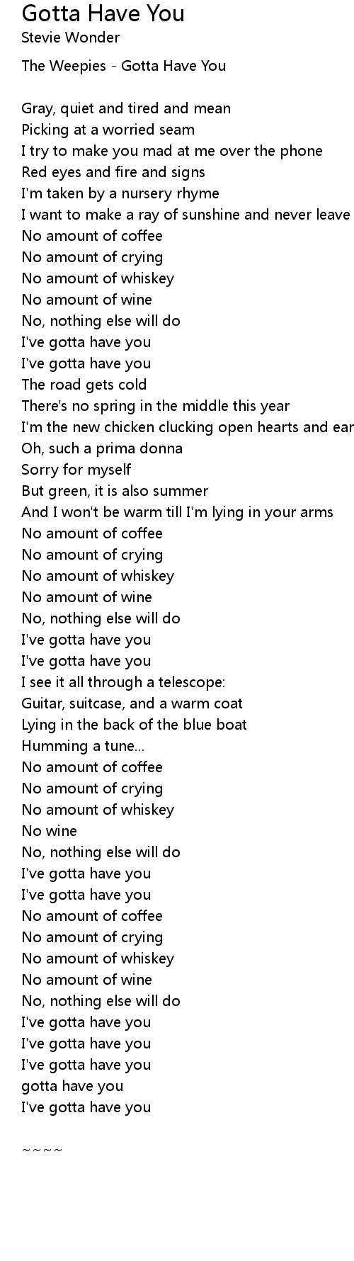 gotta have you |