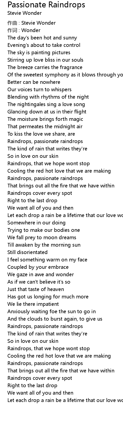 | Let each drop a rain be a lifetime that our love won' t end | |
