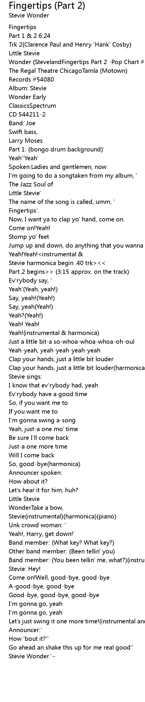 Fingertips (Part 2) Lyrics