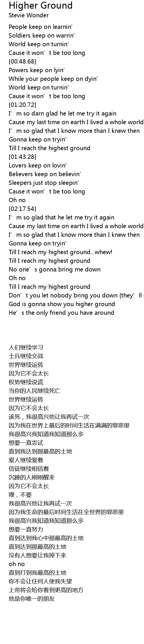 | [03:06.50] | God is gonna show you higher ground |