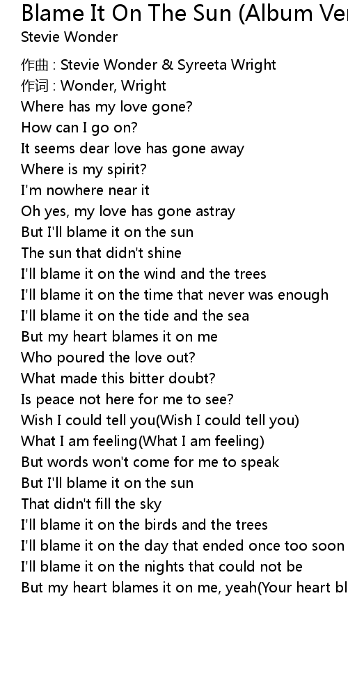 | But I' ll blame it on the sun | |