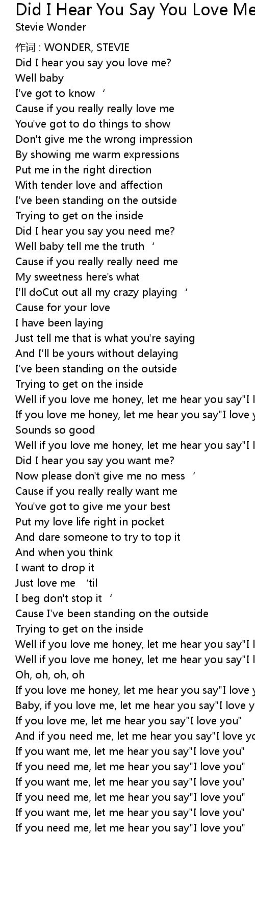 | Well if you love me honey, let me hear you say" I love you" | |