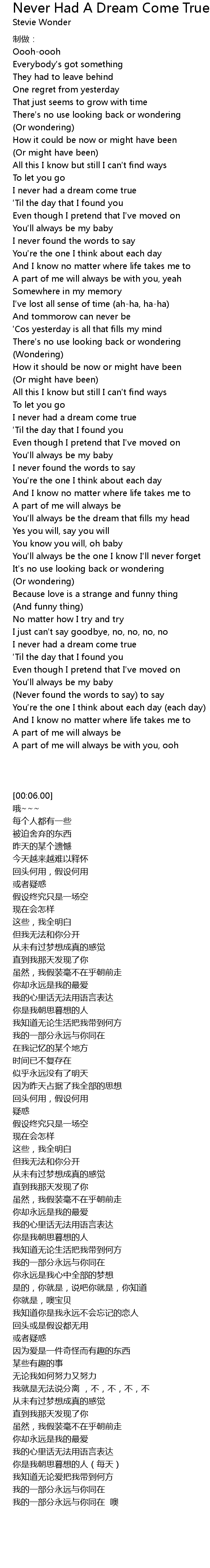 | [00:48.34] | I never had a dream come true |