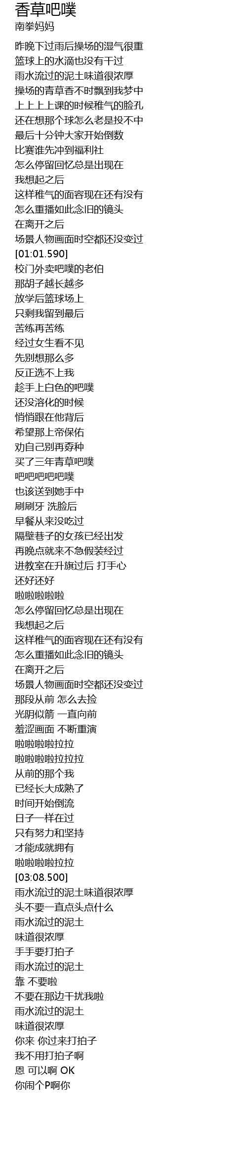 | [01:09.650] | 校门外卖吧噗的老伯 |
