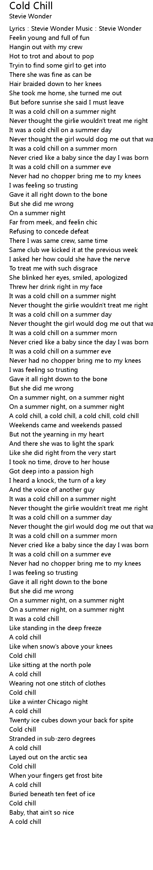 | A cold chill, a cold chill, a cold chill, cold chill | |