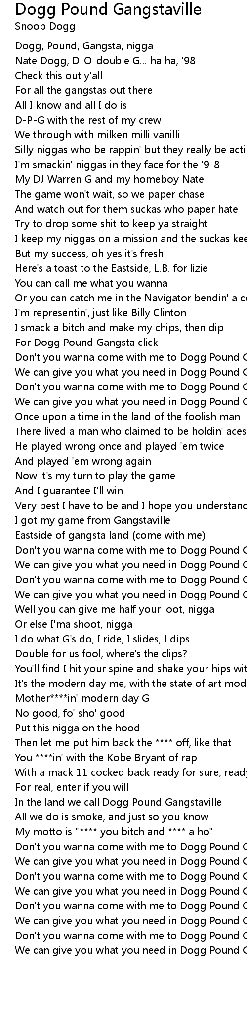 Dogg, Pound, Gangsta, nigga |