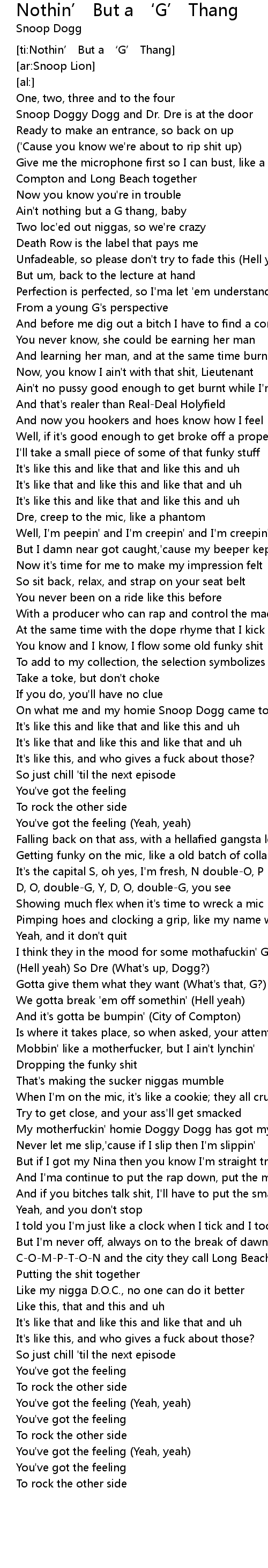 | [00:25.23] | Ain't nothing but a G thang, baby |
