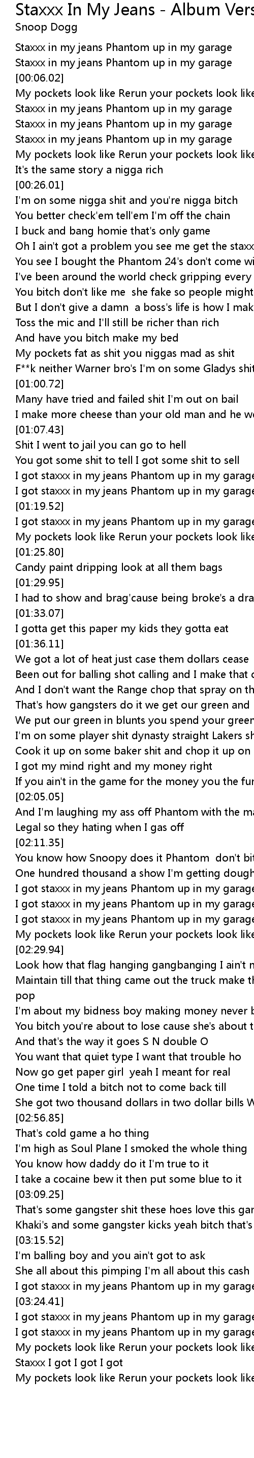 I got staxxx in my jeans Phantom up in my garage yeah |