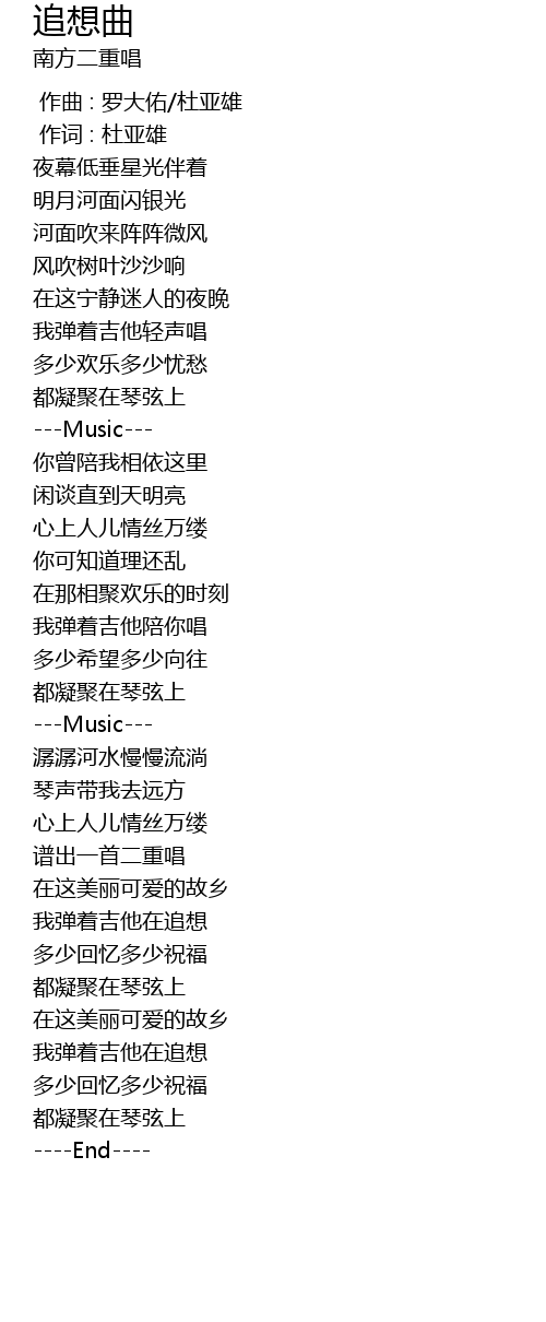 | [00:00.00] | 作曲 : 罗大佑/杜亚雄 |