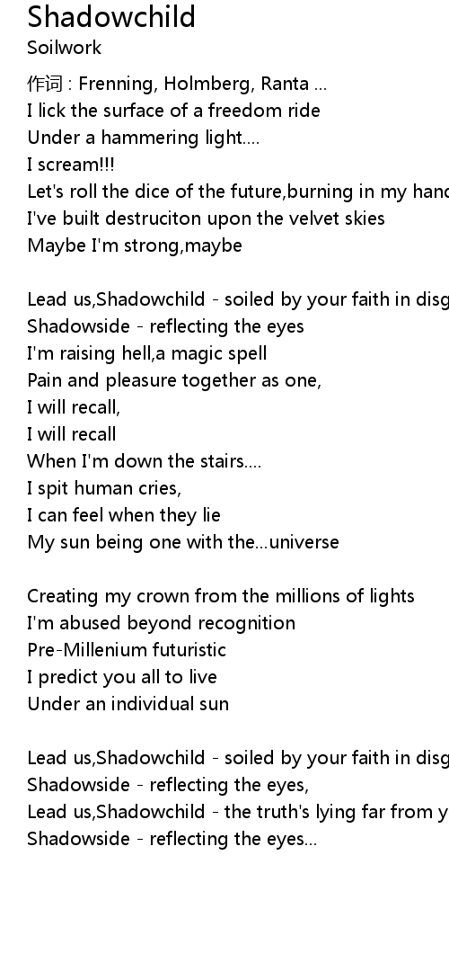 | Lead us, Shadowchild the truth' s lying far from your life, | |