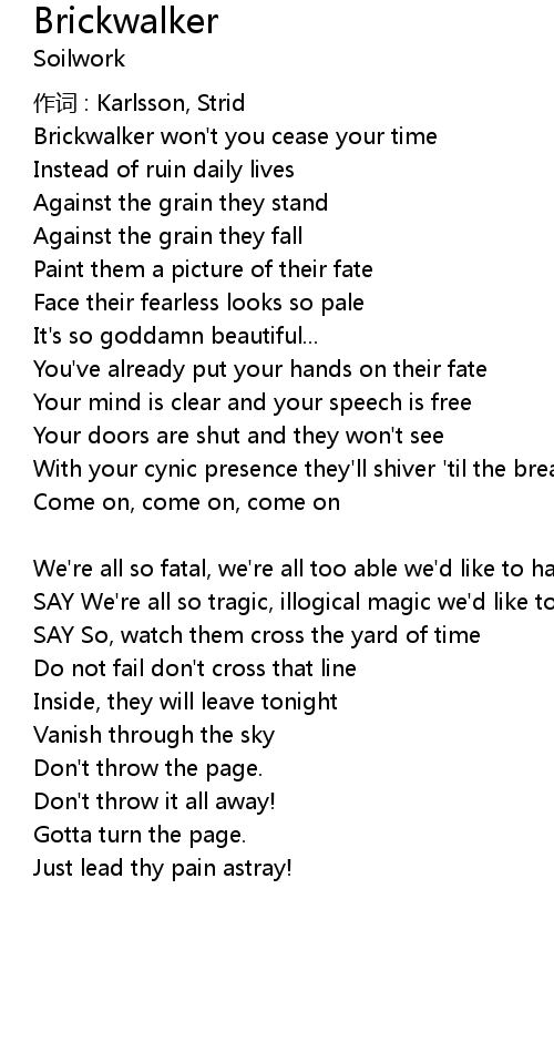 | Brickwalker won't you cease your time | |