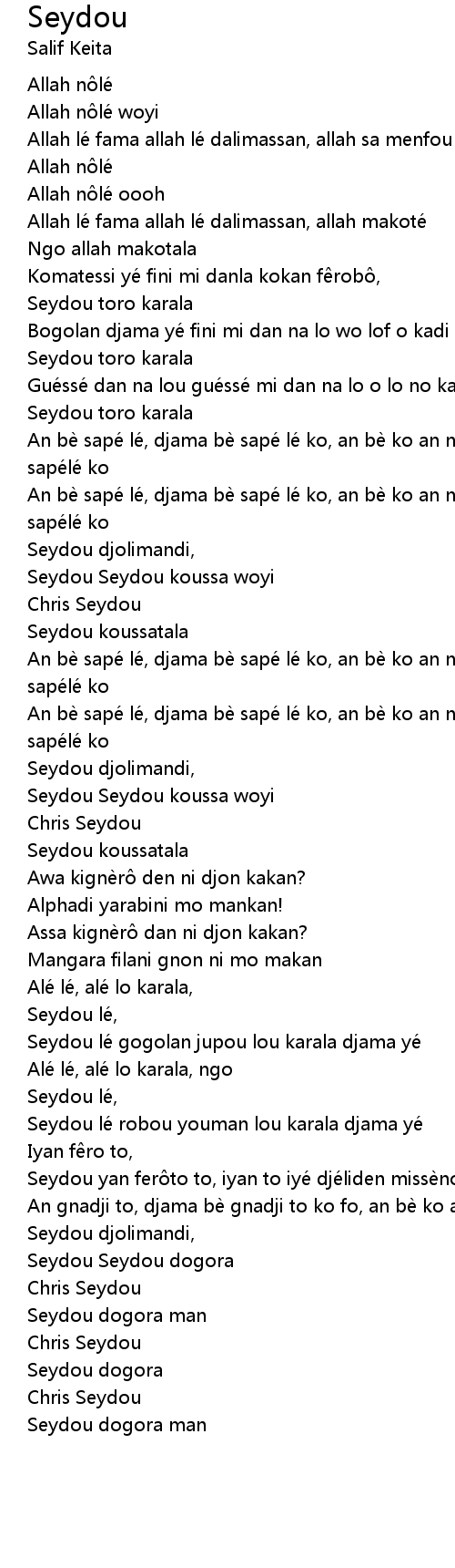 | Seydou yan fer to to, iyan to iye dje liden misse nou fero to to | |