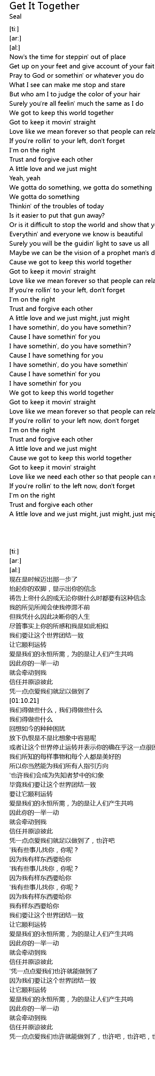 | [01:58.72] | Love like we mean forever so that people can relate |