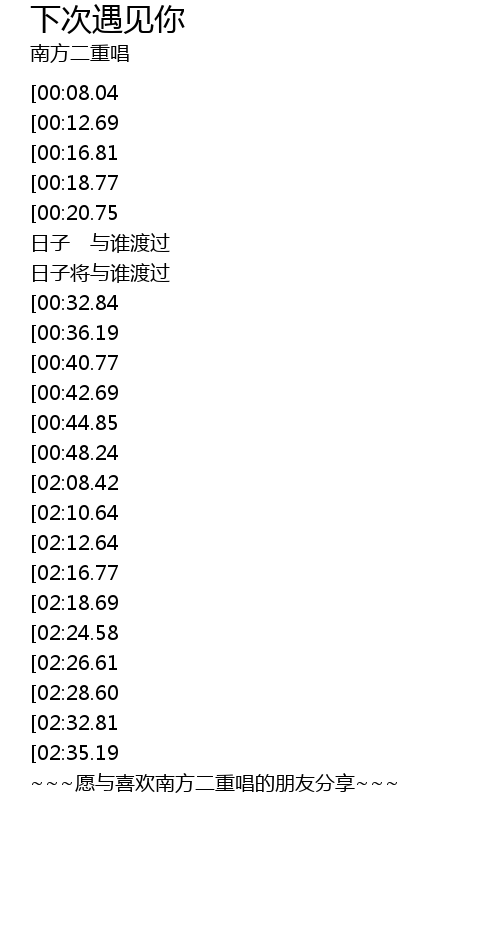 | [02:40.93][02:08.42][00:56.75] | 下次遇见你 |