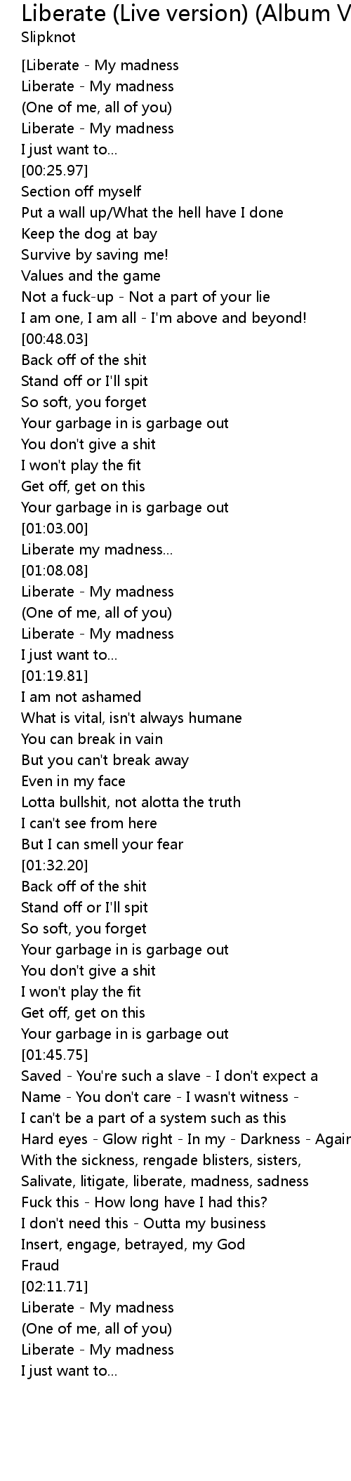 | [00:13.52] | Liberate - My madness |