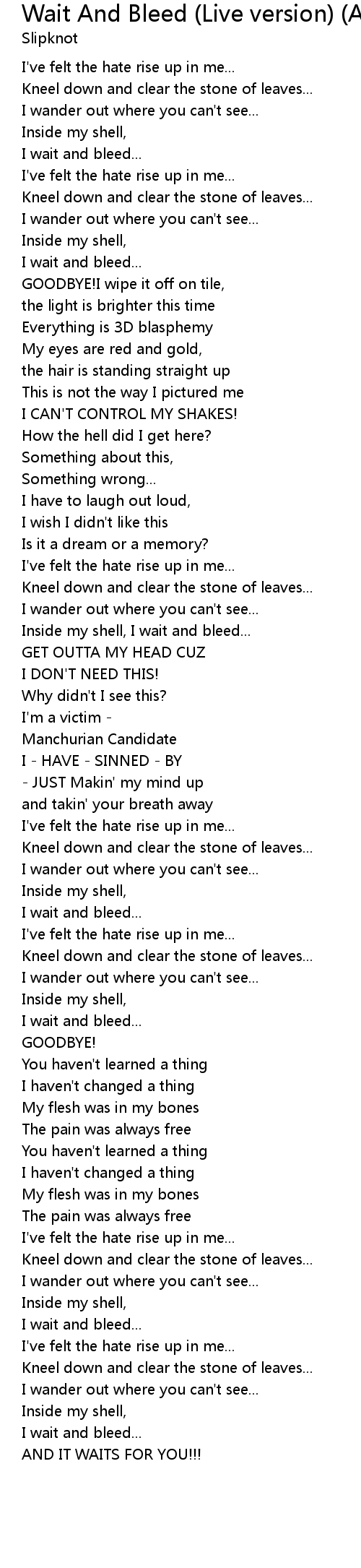 | [00:21.75] | I wait and bleed... |
