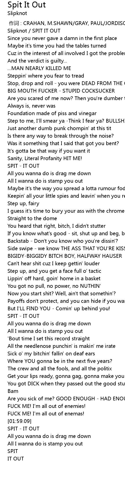 | [00:01.40] | Slipknot SPIT IT OUT |