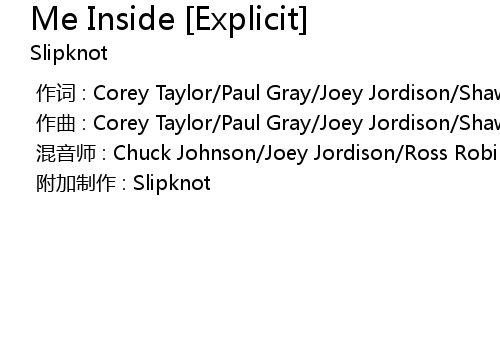 | [00:00.000] | zuo qu : Corey Taylor Paul Gray Joey Jordison Shawn " Clown" Crahan |