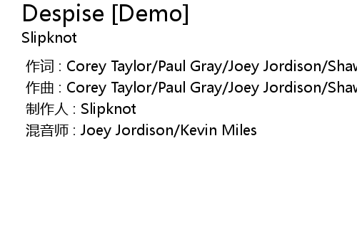 | [00:00.000] | 混音师 : Joey Jordison/Kevin Miles |