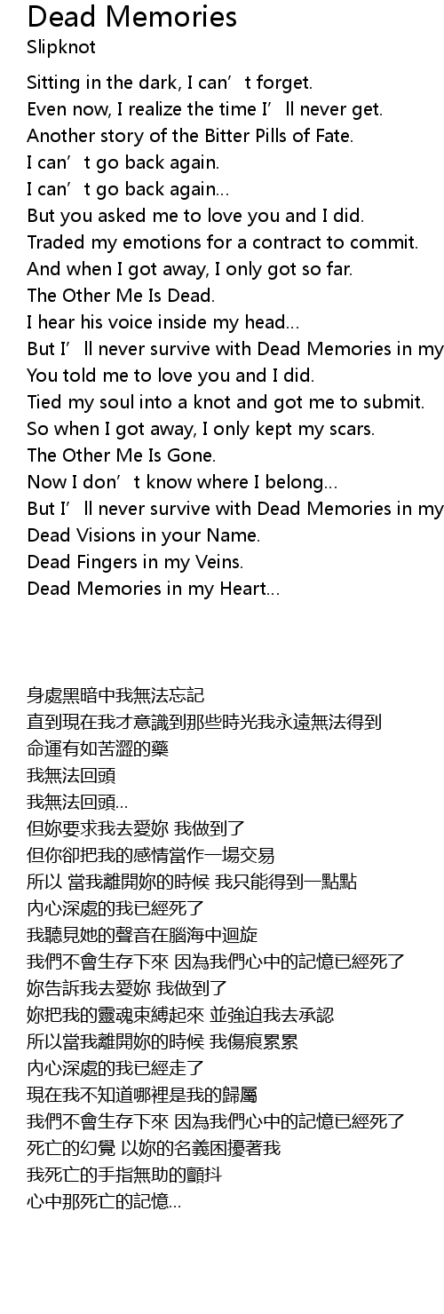 | [02:03.120] | But I' ll never survive with Dead Memories in my heart. |