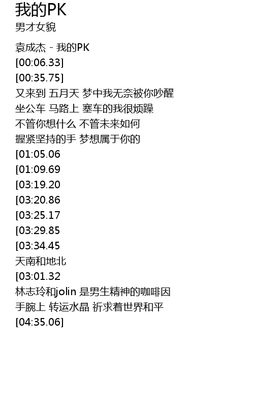 | [00:01.12] | yuán chéng jié wǒ de PK |