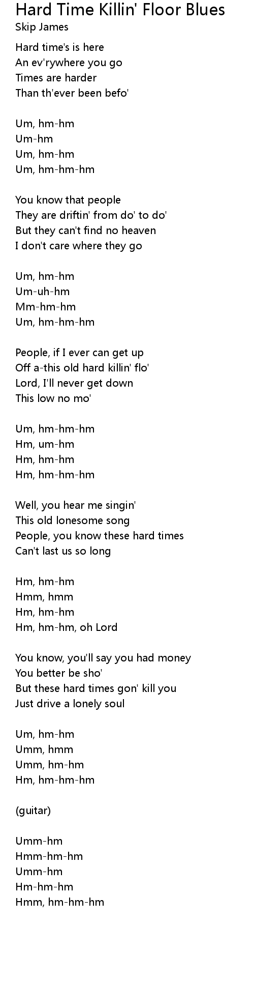 Song Hard Time Killin' Floor Blues